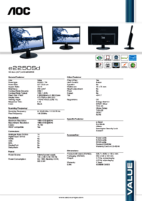 Poskytujeme 1 manuály pdf AOC E2250SD ke stažení zdarma podle typů dokumentů: Datový list